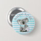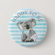 Um coala fofo tem o tema "PAI a ser" botão chá de fraldas, fundo azul com listras.