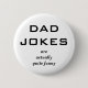 Este crachá de botão minimalista, mas divertido, certamente levanta um sorriso com fãs de piada Pai. As palavras humorísticas são "Piadas Pais em letras maiúsculas, seguidas em itálico menor por 'são na verdade bastante engraçadas'. A legenda divertida forma uma design minimalista e atraente a preto no branco, na tipografia da na moda. Um acessório divertido e presente de novidade para o aniversário de Dia de os pais ou Pai.