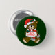 Um botão/crachá divertido para a época de Natal. Um ursinho bonitinho mantendo as patas aquecidas em um lenço e vestindo um boneco de Papai noel. A mensagem personalizável no muff diz "Feliz Natal!"