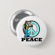 Hippie segurando uma guitarra com um sinal de paz no fundo.