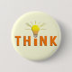 Um simples design que diz "Pense" com uma lâmpada a apontar a letra "I" em amarelo e laranja. Há linhas ondulantes ao redor da lâmpada que poderiam representar o cabelo deskempt de Albert Einstein.