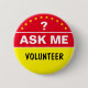 Botões: Pergunte-me sobre - VOLUNTEER - texto personalizado do botão. Faça suas perguntas sobre diferentes tópicos. O texto pode ser personalizado para tópicos, nome das pessoas. Excelente para festivais, eventos, pessoal do help desk, assistente de informação, debates escolares - botão vestuário/saco.
