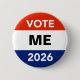 Make your own personalized campaign buttons and other materials for the presidential year primary and general elections of 2026. The default candidate is “ME”, but you can easily change that to any candidate you support or would like to encourage. Or, why not run yourself? You might have a great political future ahead… even as president in a couple of years if you’ll be 35 years old. Otherwise, it’s the Senate, the House of Representatives, or statewide office. Maybe even a local elective office. Get started now. Use the “click to customize further” template link to change font size or color. Even add a small graphic, if you wish.