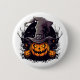 O pino do botão do Dia das Bruxas é mostrado com uma impressão de arte de abóbora com comichão. Personalize este item ou comprar como está.