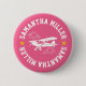 This bold, fun button features a charming white line art of a Piper Cub airplane and clouds image personalized with your name and 2 gold stars on a lush pink background.