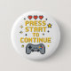 This fun and nostalgic pixel art button features the phrase “Press Start to Continue” in bold yellow 8-bit font, accompanied by red pixel hearts, a retro-style game controller, and pixel stars. Perfect for gamers, streamers, game lovers, and retro enthusiasts. Great for backpacks, jackets, lanyards, or convention flair!