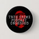 Um botão para os verdadeiros amantes de podcasts de crimes em todo lugar, com uma impressão digital sangrenta no estilo da máquina de escrever "Podcast do Crime Verdadeiro" Obcecado.