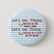 Este botão hilário para escritores, editores, bibliotecários, professores de inglês e esnobes gramaticais ilustra a importância da pontuação. Quando está chamando Timmy para jantar, precisa de uma vírgula. Quando estiver planejando canibalizar Timmy em uma jangada salva-vidas, deixe a vírgula para trás. Timmy ficará grato na situação nº 1 - e todos os outros no barco ficarão gratos pela situação nº 2. Seja qual for a situação, você será um membro orgulhoso da polícia gramatical.