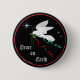 Brilhe sua roupa de Natal com este botão "Um tipo"! Apresentando um Carregando de Dove Branca Serene e um Ramo de Oliva com Faixas Vermelhas e Verdes Fluindo Espalhando... "Paz na Terra"! Este é um Design de Arte Original do Artista Kerry Miller. Aproveite!