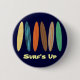 Botão riscado de pino das pranchas de surfe. A cor de fundo e o texto podem ser personalizados.