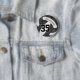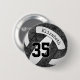 Esta equipe colorido o botão de voleibol apresenta a imagem realista de um vôlei preto e branco estilizado que tem um padrão caleidoscópico floral artístico misturado com seus painéis pretos - personalize com o nome do atleta e o número de camisa - de katz_d_zynes