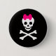 Este Crachá de Botão Emo apresenta um crânio e ossos cruzados com um arco rosa.