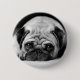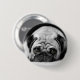 Fotografia preto e branco de um pug pequeno muito adorável com os olhos marrons com alma.