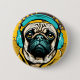 Bóton Redondo 5.08cm Pug vestindo fones de ouvido