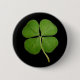 Pino/botão preto do shamrock de 4 folhas. A cor de fundo pode ser personalizada.