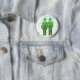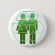 Símbolo transparente do reciclagem e dois símbolos verdes para um homem e uma mulher em botões do reciclagem do Dia da Terra, em ímãs, em chaveiro e em mais presentes.
