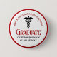 Este moderno botão vermelho e preto de graduação médica personalizada apresenta a tipografia moderna para uma classe de formando de 2024. Personalize com o seu ano de graduação sob o símbolo caduceus para uma enfermeira personalizada excelente ou um nome de etiqueta de manutenção de presente ou para uma conferência médica.