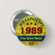 Personalize este crachá do botão da reunião de classe com seus ano da graduação, número da reunião, e nome da escola. O ouro vívido stars o fundo com design vermelho e azul. Inteiramente customizável para seu evento da reunião, este faz uma lembrança agradável do evento igualmente.