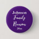 Estes botões de reagrupamento familiar são roxos reais. Eles têm texto branco. Você pode usá-lo para mostrar uma mensagem personalizada como o sobrenome da sua família e o ano em que você está tendo a reunião da família. (Mostrada: Johnson Family Reunion 20xx) As palavras reagrupamento familiar estão em um roteiro.
