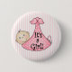 Um bebé em uma cobertura cor-de-rosa contra um fundo de listras cor-de-rosa e brancas lê-o "é uma menina!".