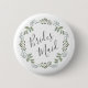 O botão apresenta uma coroa de folhagem aquosa em tons de verde-sábio e cinza. O texto diz "Brides Maid" em caligrafia com estilo de caligrafia/cinza fora do preto. Veja a nossa coleção Botânica Sage Greenery para coordenar designs.