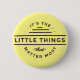 São as Coisinhas que mais importam o botão amarelo Este é o padrão de tendência perfeito para o seu estilo cotidiano. Este simples design inspiracional apresenta cores amarelas e pretas claras. Com uma citação inspiradora correspondente. Visite nosso compro para coordenar acessórios.