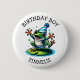 Botão de aniversariante do sapo bonito. Cartoon sapatinho dançando com um chapéu de aniversário.