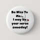 Se você é uma enfermeira você amará este botão bonito do design da enfermeira que lê "seja agradável a mim… que eu posso ser sua enfermeira um dia!".