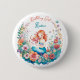 Uma sereia bonito em um leito de flores, o botão personalizado da menina da ilustração aquática. As cores utilizadas são cor-de-rosa, coral, laranja, amarelo e azul.
