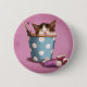 Gatinho adorável que napping em um pote azul do lápis das bolinhas, pintado pelo artista Maryline Cazenave.