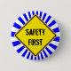 segurança primeiro - uma mensagem de excelente em um botão de aviso engraçado
