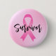 O botão "Survivor" do cancer da mama apresenta a inscrição personalizada de scripts pretos com uma fita rosa simbólica e um fundo de gradiente rosa.