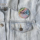 Este botão caracteriza bares diagonais em máscaras pretas e pastel (azul, amarelo, cor-de-rosa e verde.) Lê, "sorri!"