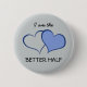 Botão romântico com os dois corações azuis que ilustram os dois halfs de um casal alegre. Este botão é parte de um grupo; na versão de harmonização (ELE+) o coração oposto é enchido com a cor azul. Presente perfeito para alguma ocasião relacionada do sócio. 6 combinações de camisas, de canecas e de botões estão disponíveis em KreaturShop.