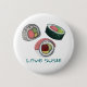 Eu amo o sushi saboroso. Toda certo! Amantes do sushi! Verifique este o sushi adorável Rolls. Rolo bonito de Califórnia do futomaki e do uramaki. Seus caras e sorrisos bonitos são apenas irresistíveis. Você apenas quer mais sushi. Recorde assim: o nori, o salmão, o peixe de atum, o wasabi, o arroz, o abacate e o pepino fazem este prato tão perfeito.