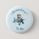 Um ursinho bonitinho em um avião azul voa pelas nuvens com um casal de estrelas em cima cercado pelas palavras "Avó a Ser". Todo texto pode ser facilmente alterado para suas informações.
