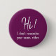 Você esteve lá. Você está em um grande encontro de amigos, família, ou colegas e alguém vem até você com uma saudação entusiástica. Claramente eles parecem conhecê-lo, mas você não tem ideia de quem eles são. Quebre o gelo da estranheza com este adorável acessório! Talvez eles se apresentem sem avisar.