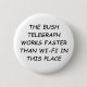 Texto que diz com humor "O telégrafo de bush funciona mais rápido que o Wi-Fi neste lugar". "Bush telegraph" é uma gíria australiana para a rede de fofocas, o que implica que a comunicação é mais eficaz do que a internet.