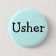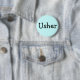 Botão personalizável de pino "Usher". A cor, a forma, a fonte e o texto em segundo plano podem ser personalizados.