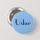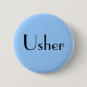 Botão personalizável de pino "Usher". A cor, a forma, a fonte e o texto em segundo plano podem ser personalizados.