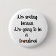 Botão branco com texto que diz, "Estou sorrindo porque vou ser avó." Maneira perfeita de anunciar a gravidez à nova avó.