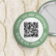 Botão de código QR para pequenas empresas de promocional com uma borda verde e seu próprio código QR e texto personalizado em uma curva em torno do seu código QR. Obrigado por comprar o botão promocional personalizado com seu código QR e texto personalizado.
