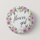 Identifique os jogadores-chave no seu chá de panela com nossos botões florais elegantes e doces. O botão apresenta flores cor-de-água roxas, cor-de-rosa, rosa-violeta, e folhas verdes, com a "menina das flores" inscrita no roteiro de caligrafia.