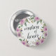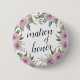 Identifique os jogadores-chave no seu chá de panela com nossos botões florais elegantes e doces. O botão apresenta flores cor-de-água roxas, rosa e violeta, e folhas verdes, com a "matrona de honra" inscrita em script de caligrafia.