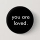 Crie seu próprio botão personalizado "você é amado" acentuado em design minimalista moderno. Preto e branco, chique, ousado, moderno e elegante. Perfeito para qualquer pessoa lembrá-la de que você é tão amado - ponto final. Personalize meu modelo com suas próprias cores, texto e fontes.