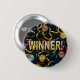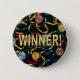 Botão redondo com uma imagem de medalhas atléticas de ouro, prata e bronze com fitas de ouro, vermelha, azul e verde em preto e vencedor! em caracteres dourados.  Consulte chaveiro de metal grande redondo e chaveiro de acrílico quadrado lado a solteiro. Veja a coleção inteira de botões e pinos do dia do pai em TOUCHES ESPECIAIS | Seção Favoritos para festas.
