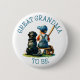 Vovó excelente para ser o botão de chá de fraldas do garoto temido de beisebol e cachorro! Botão de chá de fraldas de beisebol bonito para a avó ser. Um garotinho com um boné de beisebol e um taco sentado em um banco ao lado de um Cachorro Negro. Adorável botão de chá de fraldas do garoto temático de beisebol em estilo aquarela.