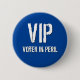 VIP em texto branco grande e moderno com "Eleitor em Perigo" embaixo em letra menor. Cor azul real. Também disponível em outras formas e tamanhos. Votem em Biden para garantir que o vosso voto conta!