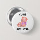 Botão com um gato que pode ser visto como adorável e um pouco de "mau". Enquanto a ilustração é principalmente doce e caprichosa, ela poderia facilmente ser enquadrada como "enganosamente inocente" — o tipo de arte que toca a ideia de os gatos serem partes iguais amáveis e diabólicas.