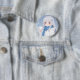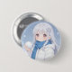 This button pin features a gentle anime girl wrapped in a warm coat and scarf, holding a small snowball as snowflakes drift around her. The cool blue palette and delicate details create a calm, cozy winter atmosphere, like a peaceful snowy afternoon.